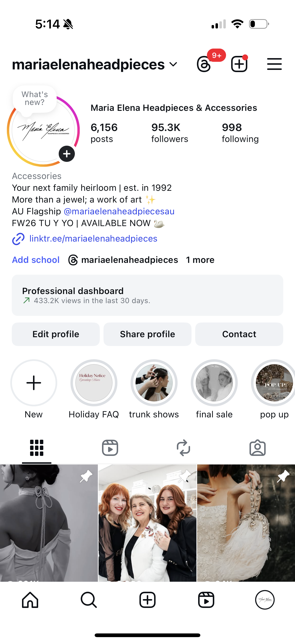 Curated and scheduled 50+ pieces of content for a 95K-follower luxury bridal brand on Instagram, driving 1.48% follower growth in one quarter